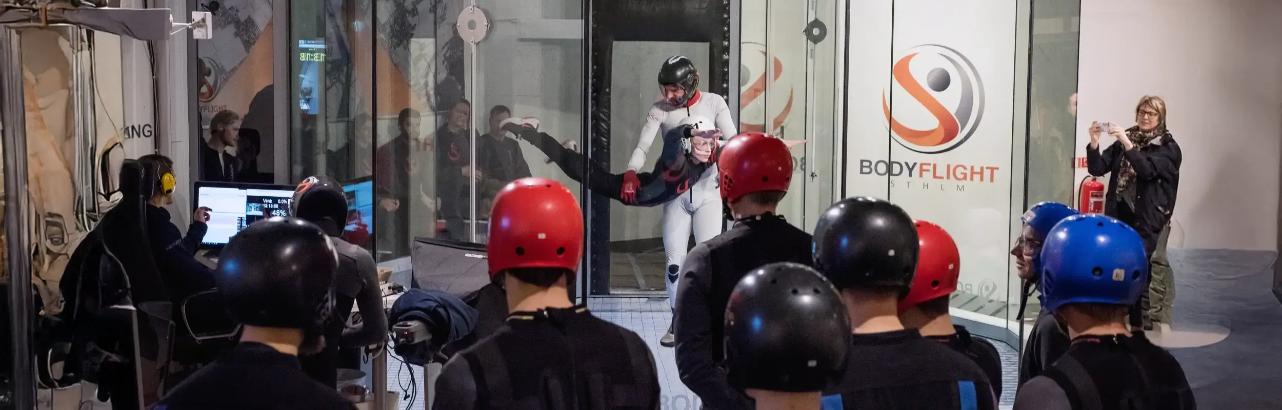 Upplevelsen börjar redan innan flygningen, när ni samlas, byter om och får instruktioner tillsammans. Förväntan byggs upp i gruppen och när det väl är dags att kliva in i vindtunneln är det en gemensam upplevelse som skapar både skratt och adrenalinkickar.